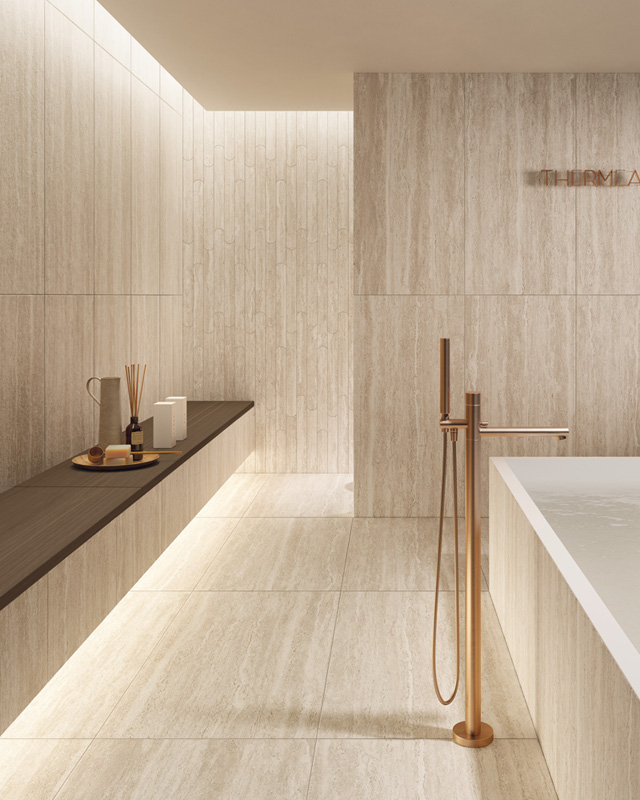 The Astrum porcelain tile collection finds inspiration in the natural elegance of travertine. Capitalizing on the organic movement and texture of a timeless material, Astrum highlights both vein-cut and cross-cut travertine styles. Featuring warm, natural tones, sleek large format sizes, and classic mosaics, Astrum blends serenity and style.