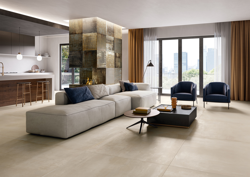 The Blade porcelain tile collection combines the powerful allure of metal with the sophisticated lightness of resin. This typically industrial style becomes more eclectic and versatile with Blade’s neutral color range and texture. The Blade collection brings a detail-rich surface that makes each space uniquely personal.
