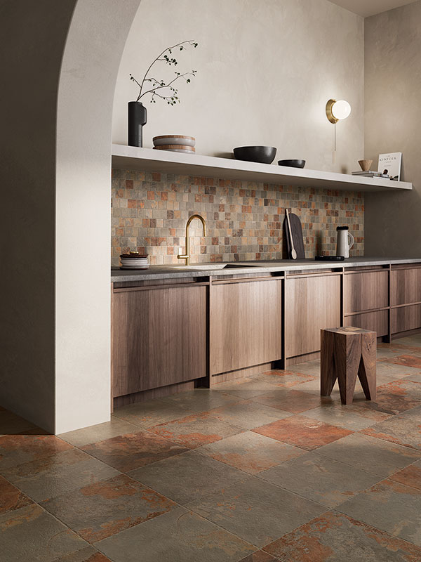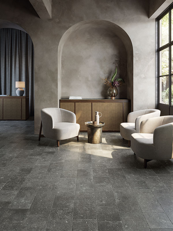 A fusion of contemporary and traditional stone looks, the Di Pietra porcelain tile collection combines an eye-catching graphic with subtle, natural tones. This detail-driven collection features miniature divots and a smoothed edge, adding dimension to a precise stone rendering. With a graphic designed to highlight the beauty of organic movement within stone, Di Pietra adds an element of natural charm to modern spaces.