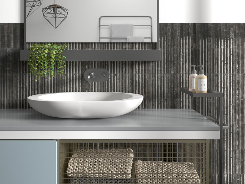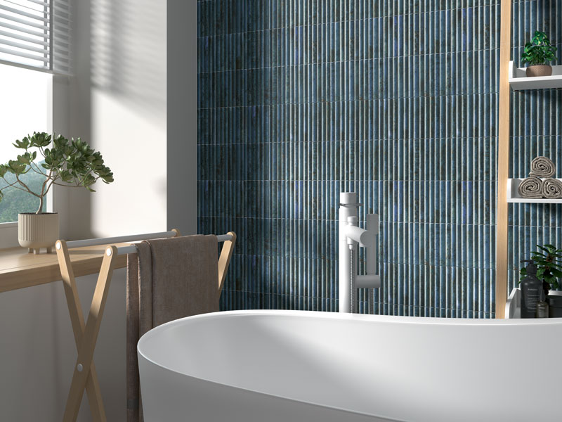 Organic and industrial design elements find harmony in the Forged ceramic tile collection. A decorative fluted surface adds stylish dimensional detail to this classic glossy wall tile look. Artistic, bold, and chic, Forged is an eye-catching addition to any space.