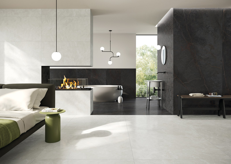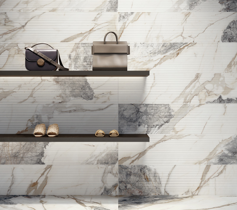 The On Stage collection is a stunning range of large-format porcelain tiles designed to elevate interiors. With intricate, sweeping graphics in vivid, refined tones, On Stage makes a statement in any application. Featuring a unique brushed finish, On Stage adds depth and character – a perfect choice for residential and commercial projects.