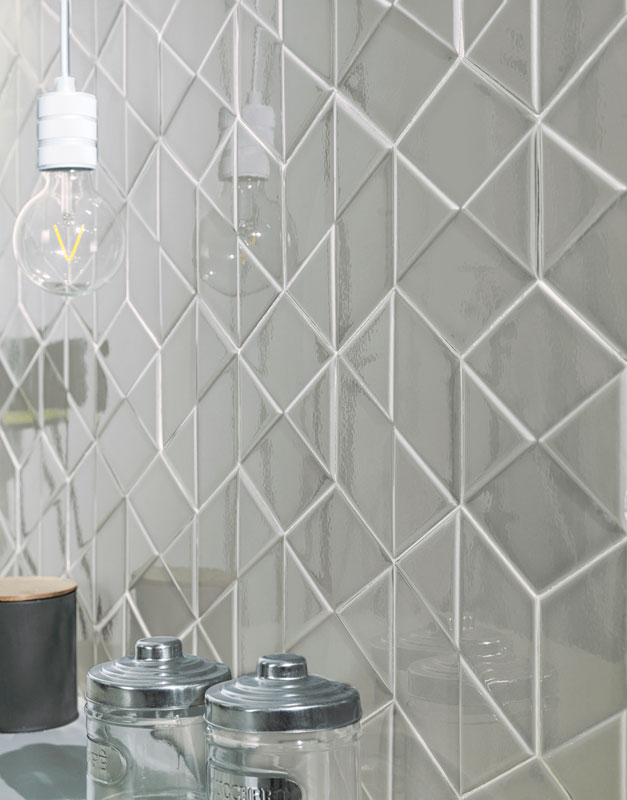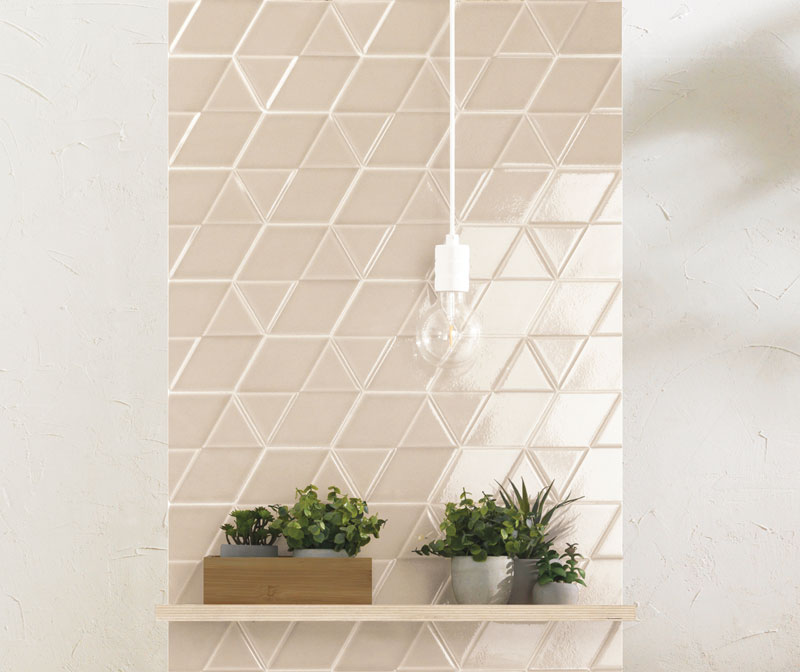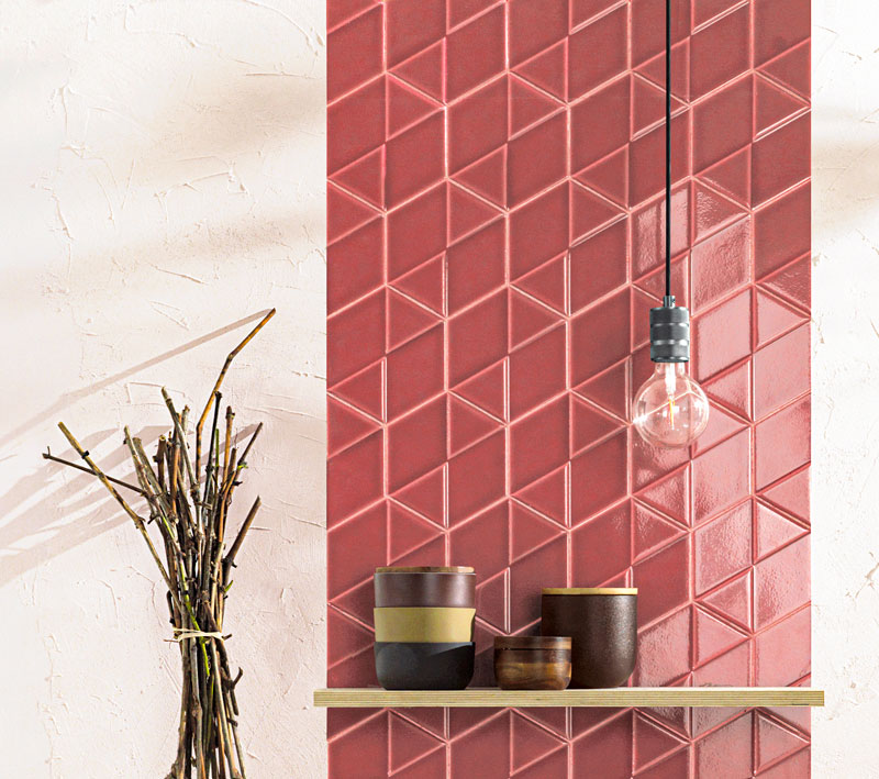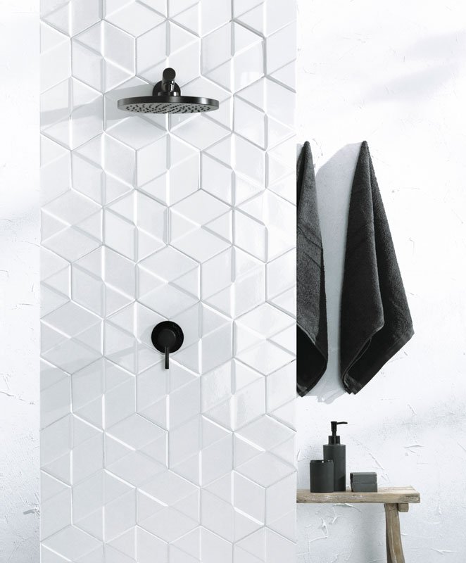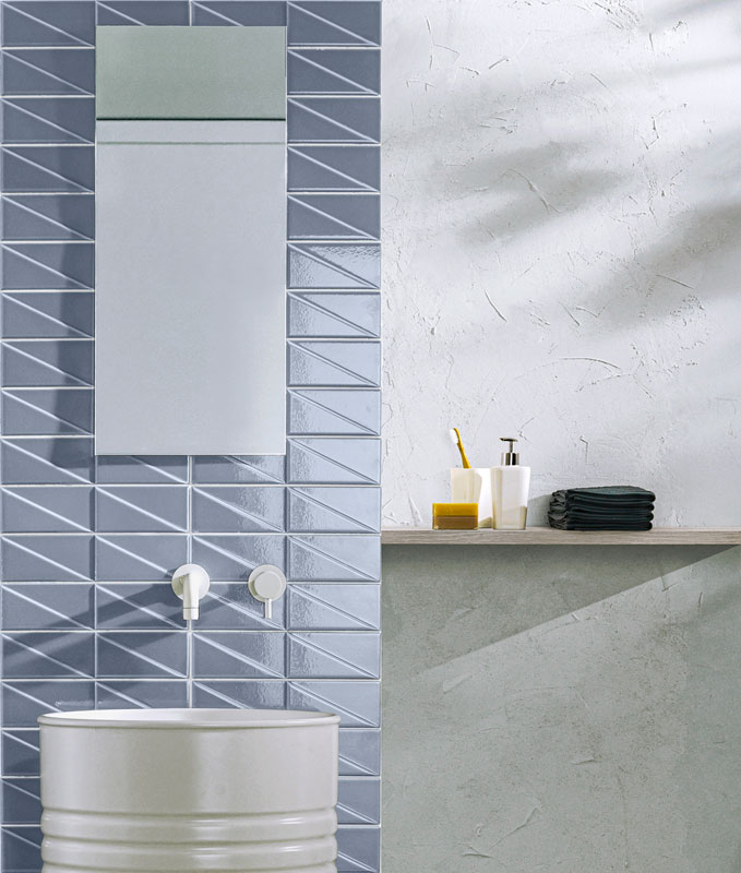 Sleek and modern, the Outfit ceramic tile collection utilizes dimension to add visual interest to a classic glossy wall tile while maintaining a minimalistic aesthetic. This unique collection includes a range of colors and two distinct shapes, resulting in an expressive line suited for any interior.