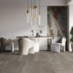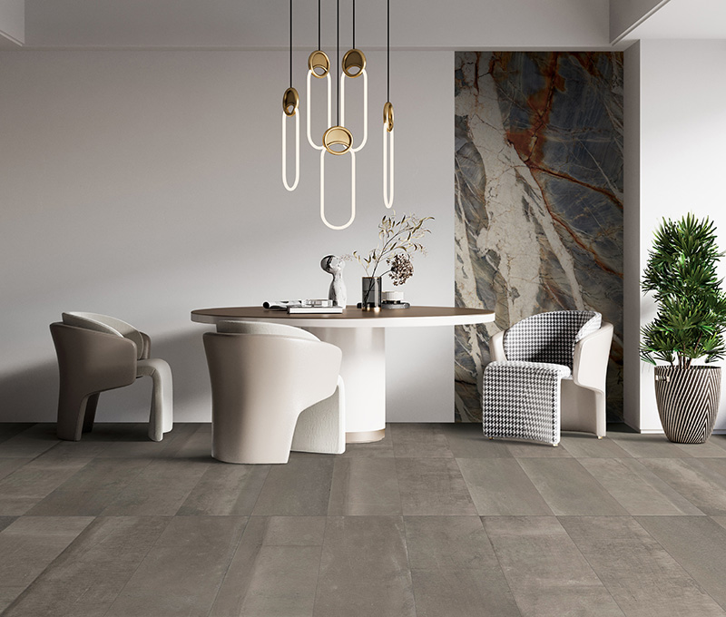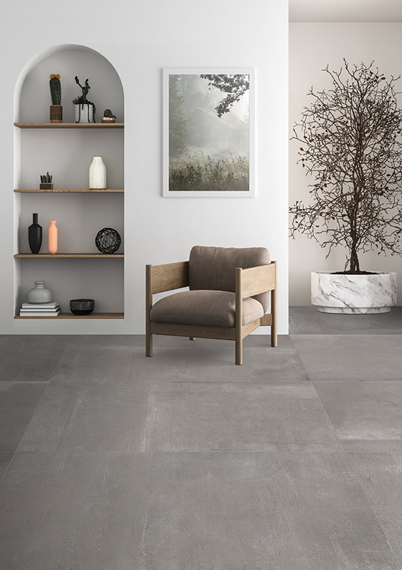A chic, metropolitan feel that does not compromise on comfort, the Reside porcelain tile collection is the perfect neutral base for any space. Warm neutral tones and a lightly textured surface add a designer touch to this concrete look.
