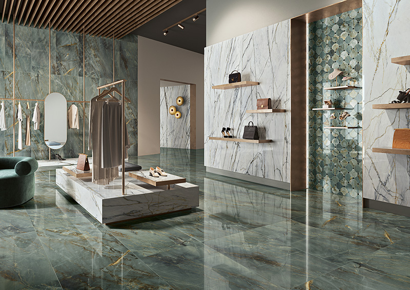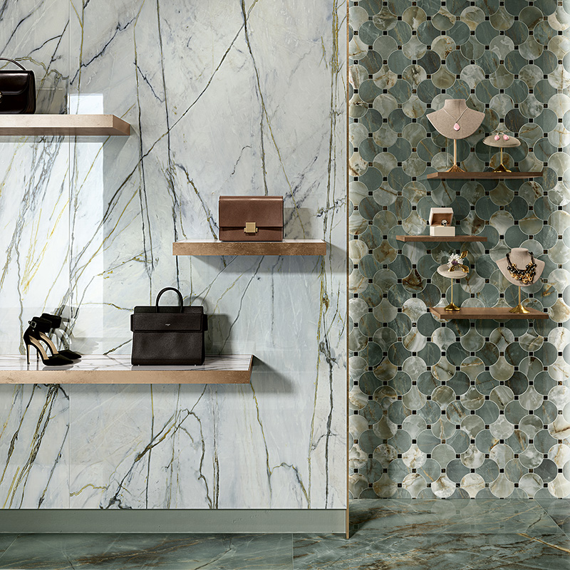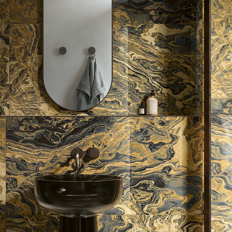 A curated selection of design-forward marble looks with vivid jewel tones and bold movement. The Serenade porcelain tile collection is rich, dimensional, and dramatic. Magnifying the natural beauty of marble, Serenade is an elevated combination of nature’s character and man’s creative spirit.